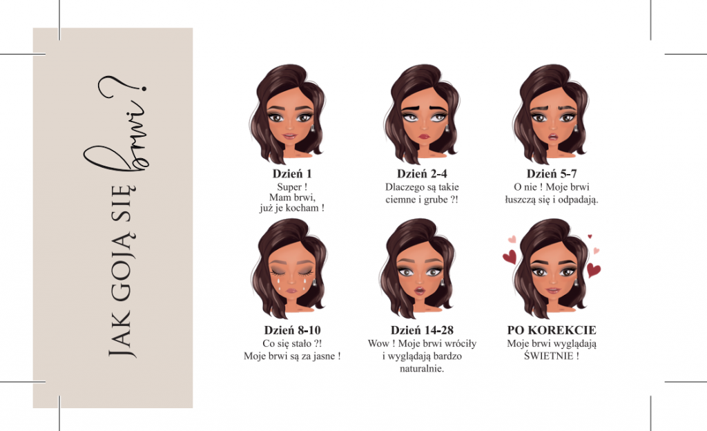 - Przez pierwsze dwie doby po zabiegu, przesuszamy miejsce pigmentowane -po tym okresie możemy posmarować brwi specjalną maścią polecaną przez linergistkę.
